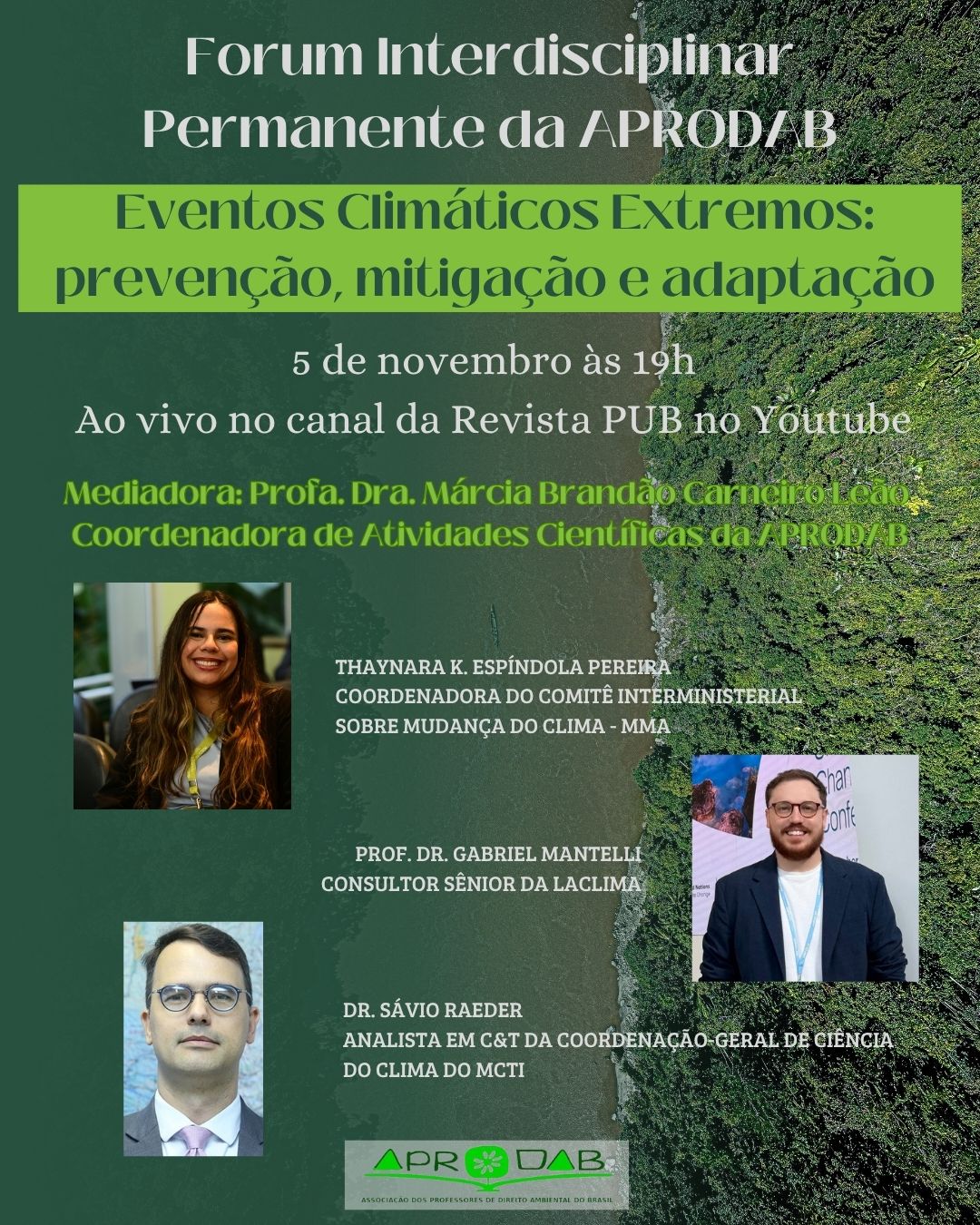 No próximo dia 05.11, às 19hs de Brasília, será realizado mais um encontro do Fórum Interdisciplinar Permanente da APRODAB-Associação de Professores de Direito Ambiental do Brasil.